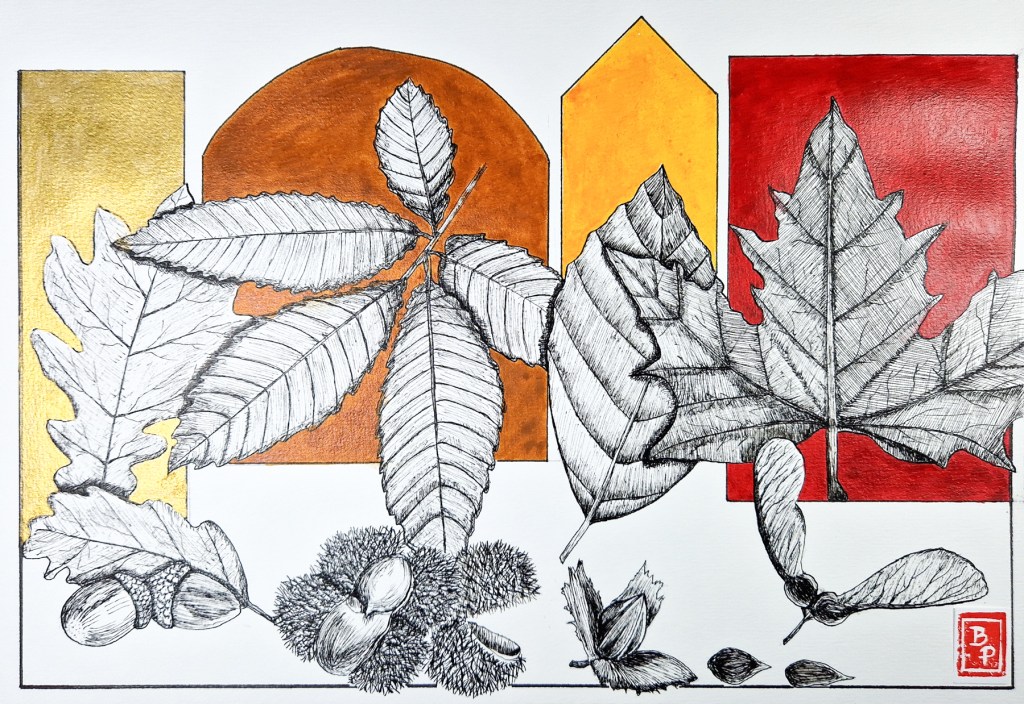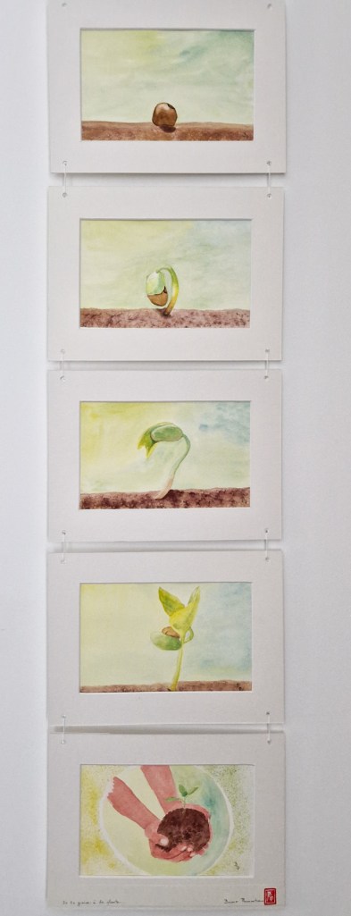 J’ai pris à la lettre le thème « Graine de… ». Ci-dessous mes réalisations. Une réalisée à l’encre de Chine à la plume, avec rehauts d’encre acrylique de couleur et or (30 x 40 cm). Une série de cinq aquarelles (20 x 30 cm). Deux petits formats au porte-mine (12 x 12 cm). (cliquer pour agrandir / voir en entier)