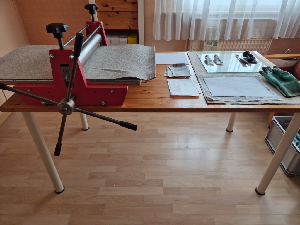Ci-dessous un petit aperçu de mon atelier de gravure :
