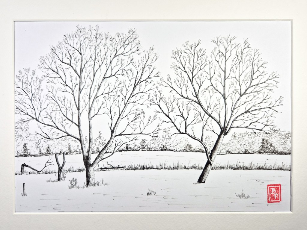 « Automne » – Encre Charbonnel Terre de Sienne brûlée sur papier Magnani Pescia 100% coton 300gr – 20 x 30cm.