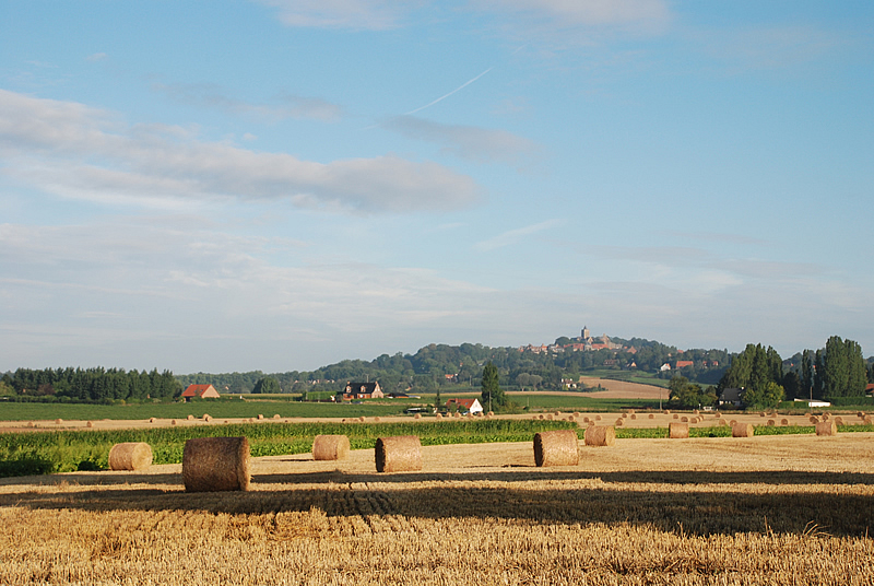 Lambersart : la plaine du Colysée. J’ai ajouté à ma photo de paysage un premier plan : une perruche à collier, un oiseau fréquent en ville depuis quelques années, et de la végétation (cliquer pour agrandir)