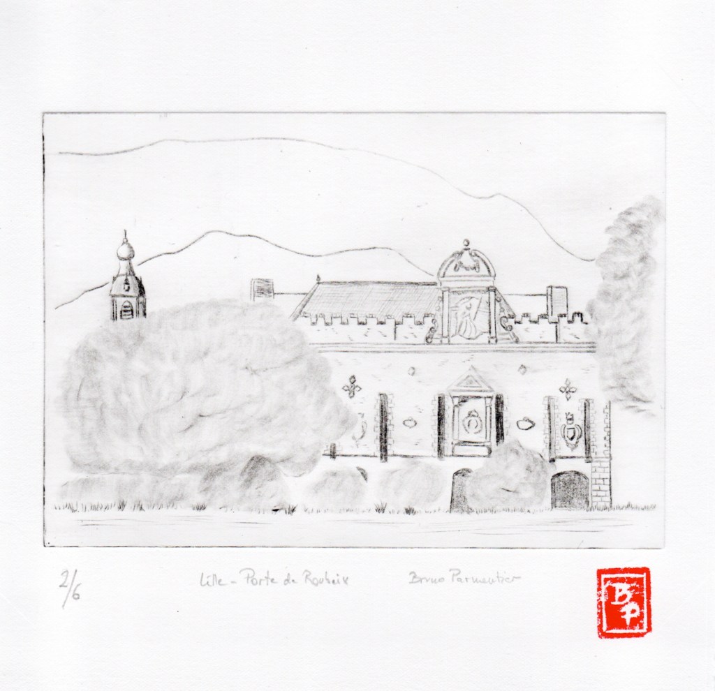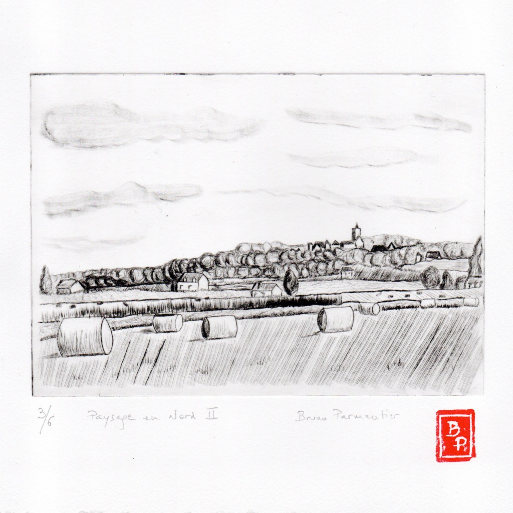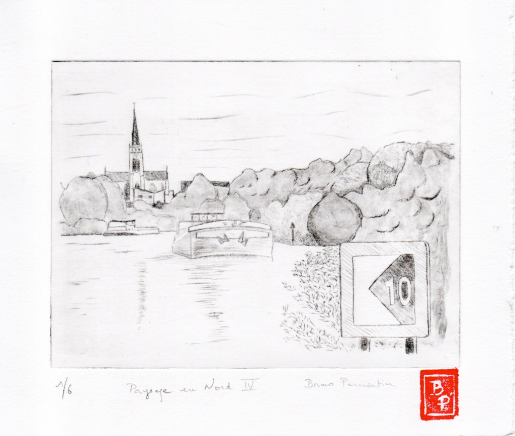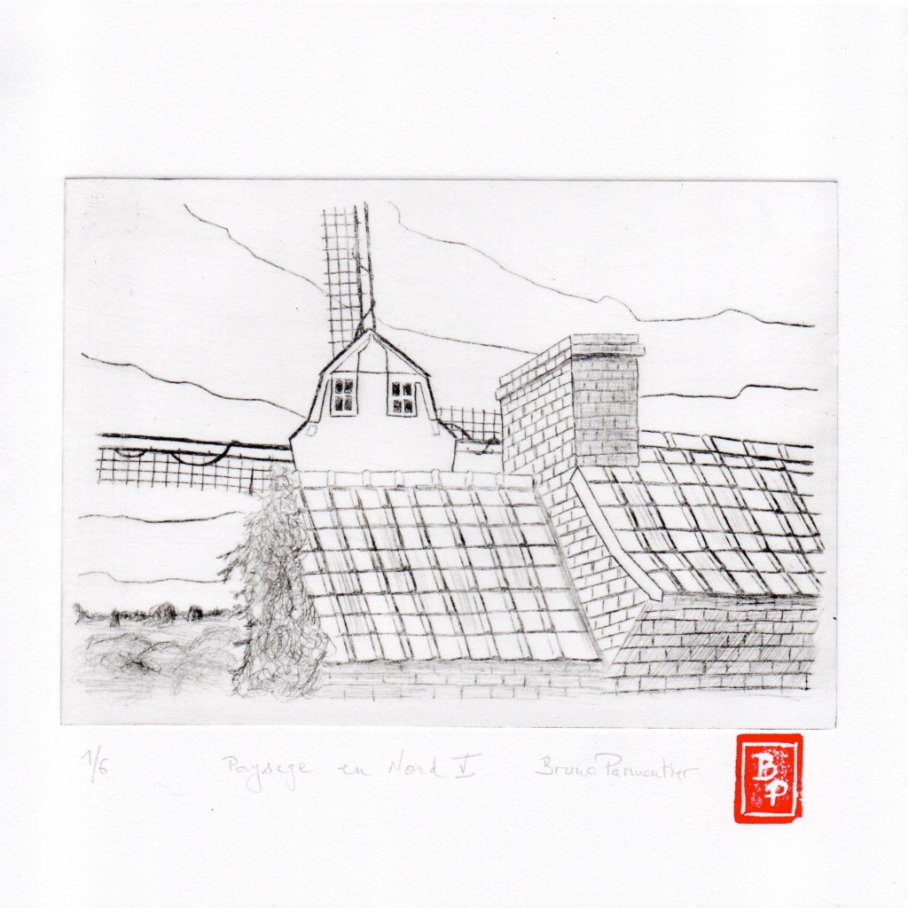 Deux séries : Paysages en Nord – Lille – d’après mes propres photos ou dessins. Pointe sèche, roulette, multi-lames sur Rhénalon. Matrice 12 x 17 cm environ. Encre Charbonnel, papier Magnani Pescia 100% coton, format 20×20 cm. Cliquer pour agrandir.
