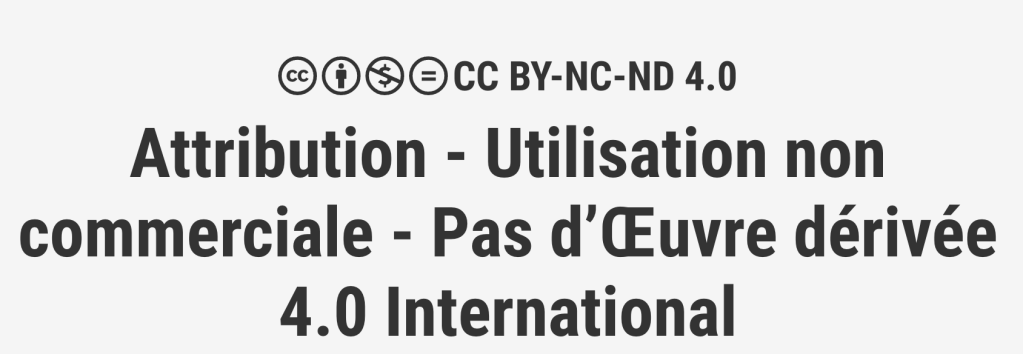 Il est sous licence Creative Commons, vous pouvez donc le partager, à condition de m’en attribuer la paternité, de ne pas en faire d’usage commercial, de ne pas le modifier.