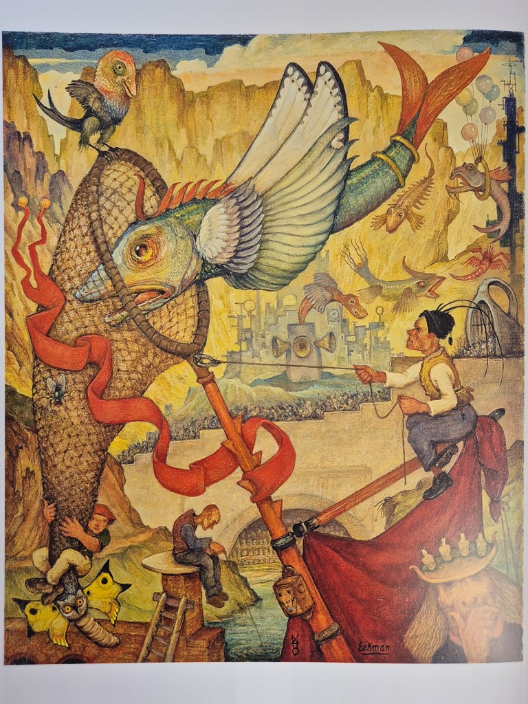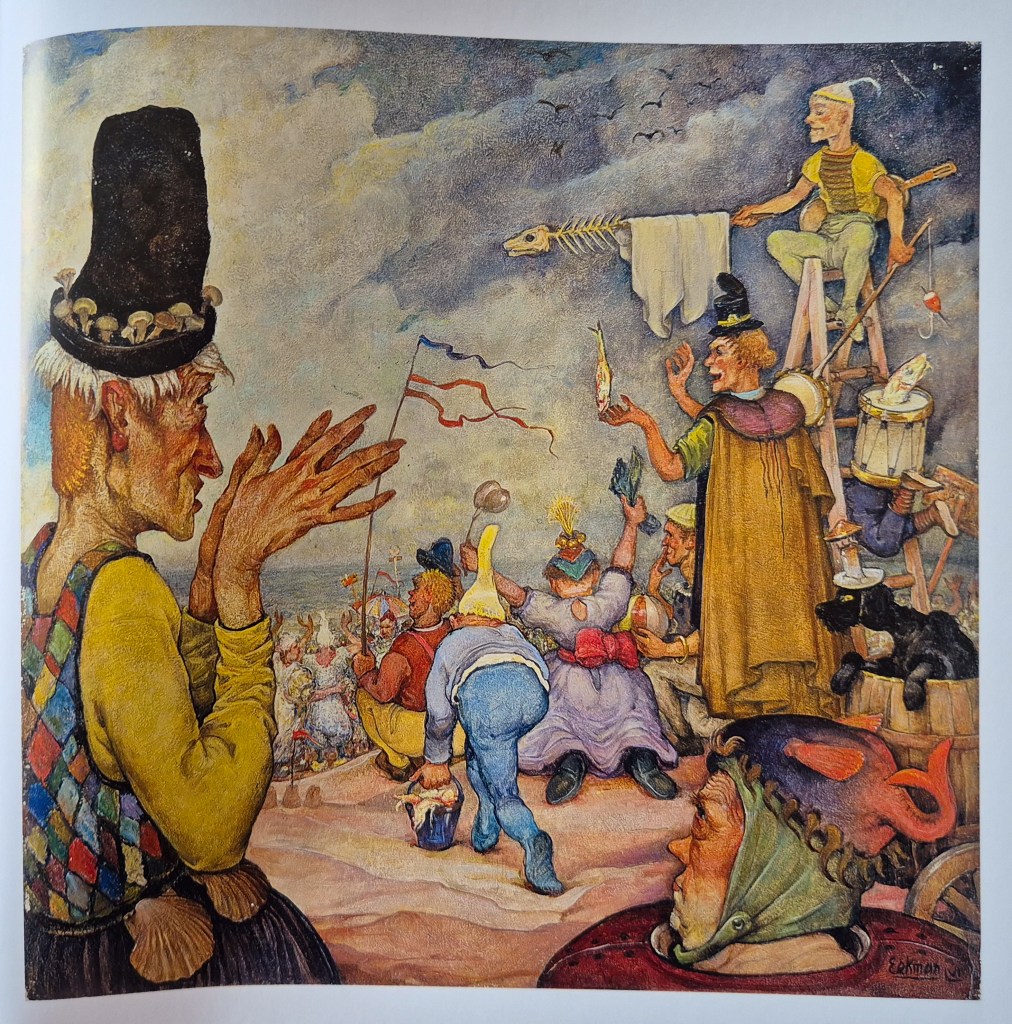Ami de Piet Mondrian et Max Ernst, Nicolas Eeckman a su inventer un univers réaliste aux antipodes de l’abstraction et des courants avant-gardistes du 20ème siècle. Peuplés de créatures fantastiques et mystérieuses, ses tableaux font écho aux chefs-d’oeuvre des maîtres flamands anciens tels Jérôme Bosch et Pieter Brueghel l’Ancien ainsi qu’au monde canavalesque de son contemporain James Ensor. (Présentation de l’exposition au Musée de Flandre)