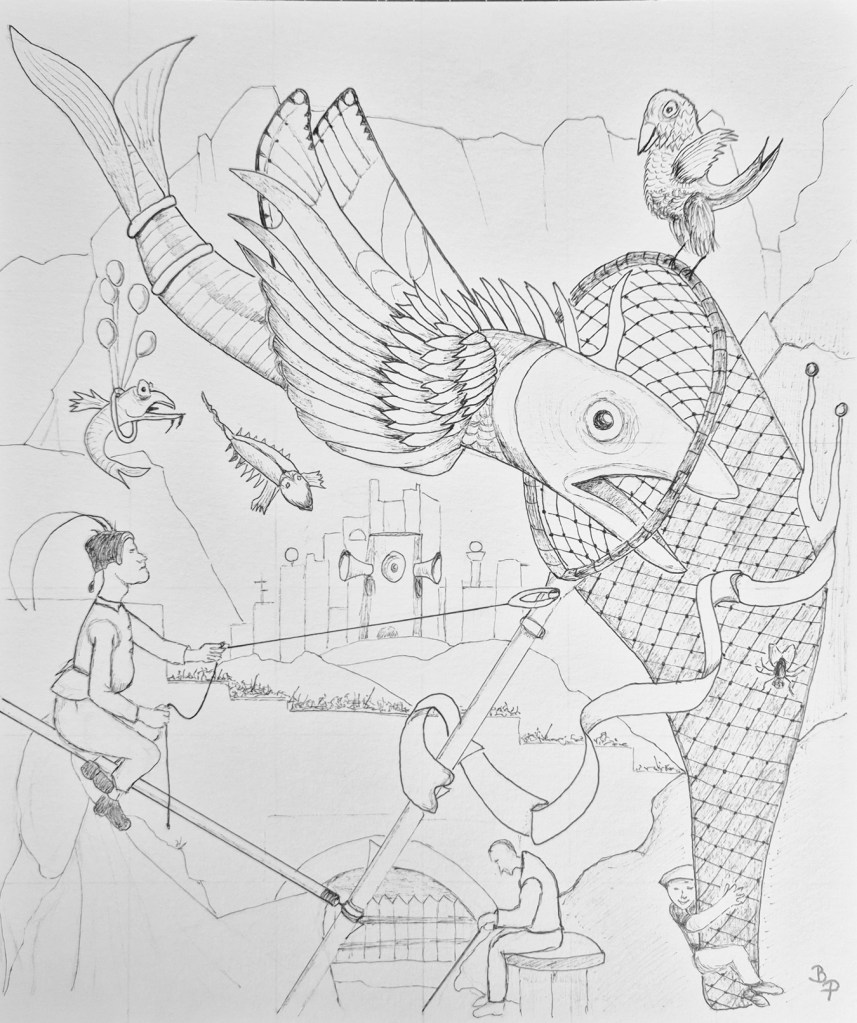 Je vous présente ci-dessous une reproduction du tableau d’inspiration, le dessin préparatoire à la gravure (crayon et feutre) et la gravure. Cliquer pour agrandir. (Il m’en reste au moins une à réaliser).