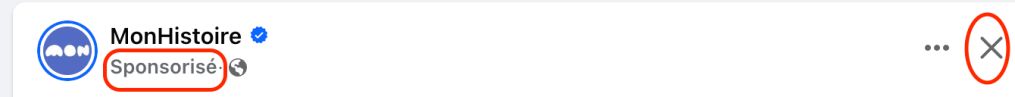 Une publicité est marquée par la mention « sponsorisée ». En cliquant sur la petite croix, en principe vous ne la verrez plus.